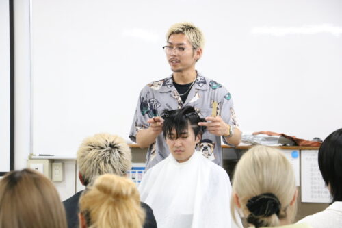 残り時間でフェードカットも実演(学生モデル)していただき、フェードカットの難しさも学習することができました